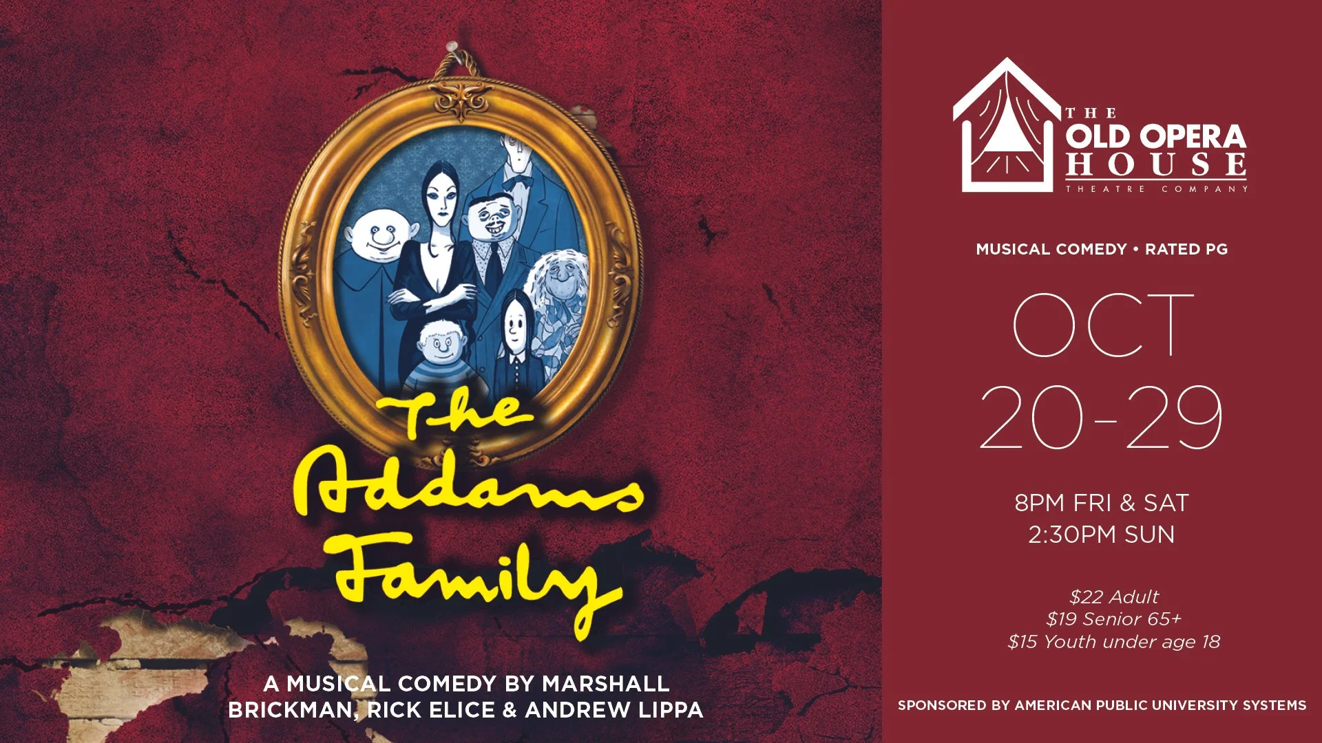 "The Addams Family" is presented through special arrangement with and all authorized performance materials are supplied by Theatrical Rights Worldwide 1180 Avenue of the Americas, Suite 640, New York, NY 10036. www.theatricalrights.com